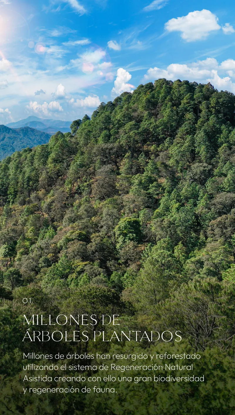 Una historia de 30 años de reforestación utilizando la metodología de regeneración Natural Asistida (RNA), que nos ha llevado a un 150% de incremento en el volumen y cantidad de árboles.